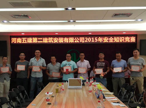 公司于7月7日在中樂百花大廈9樓組織開展了以一線安全管理員為主的安全生產(chǎn)知識競賽,參賽選手達(dá)30人。公司對此次活動高度重視,工程管理部制定了《2015年安全生產(chǎn)知識競賽方案》,并編制了上百道結(jié)合安全生產(chǎn)一線的“安全生產(chǎn)知識競賽”題,此次競賽公司還加推了“2015年安全知識競賽微信平臺”, 開放“答題搶紅包”的活動,選手們可以推薦自己身邊的工友參加。該活動獲得了各項目部的高度贊譽,充分彰顯了公司“人人講安全,人人重安全”的理念。此次活動以每三位選手自由結(jié)合的形式,通過上下半場各隊的激烈角逐,最終篩選出冠亞季軍3支優(yōu)秀隊伍。