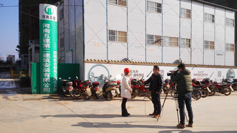 信陽(yáng)市大氣辦于12月25日邀請(qǐng)信陽(yáng)市電視臺(tái),在公司佳合如苑項(xiàng)目部對(duì)公司關(guān)于揚(yáng)塵治理采取的措施及成效,進(jìn)行了專項(xiàng)采訪報(bào)道,公司副總工、工程部部長(zhǎng)吳善艷接受了此次采訪。
