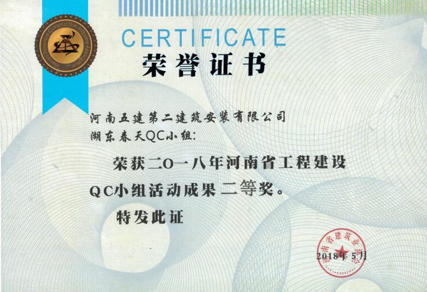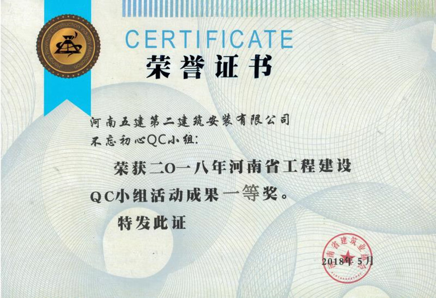 近日,河南省建筑業(yè)協(xié)會(huì)2018年工程建設(shè)優(yōu)秀QC小組活動(dòng)成果交流會(huì)在三門(mén)峽市召開(kāi),在此次的發(fā)布活動(dòng)中,公司再創(chuàng)佳績(jī),推薦5個(gè)QC成果,其中3個(gè)獲得了省級(jí)一等獎(jiǎng)、2個(gè)獲得了省級(jí)二等獎(jiǎng)。
