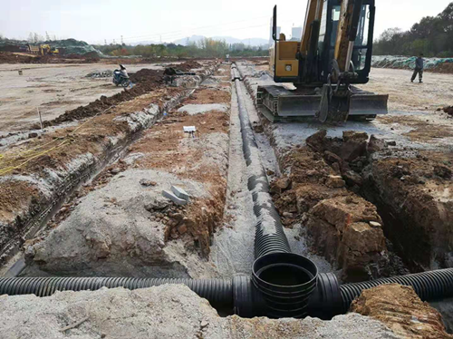 (1)停車(chē)場(chǎng)分層碾壓區(qū)(A區(qū)):預(yù)埋雨水、給水、強(qiáng)電、弱電管道?;靥钣晁?、給水管溝。砌筑雨水井、檢查井。