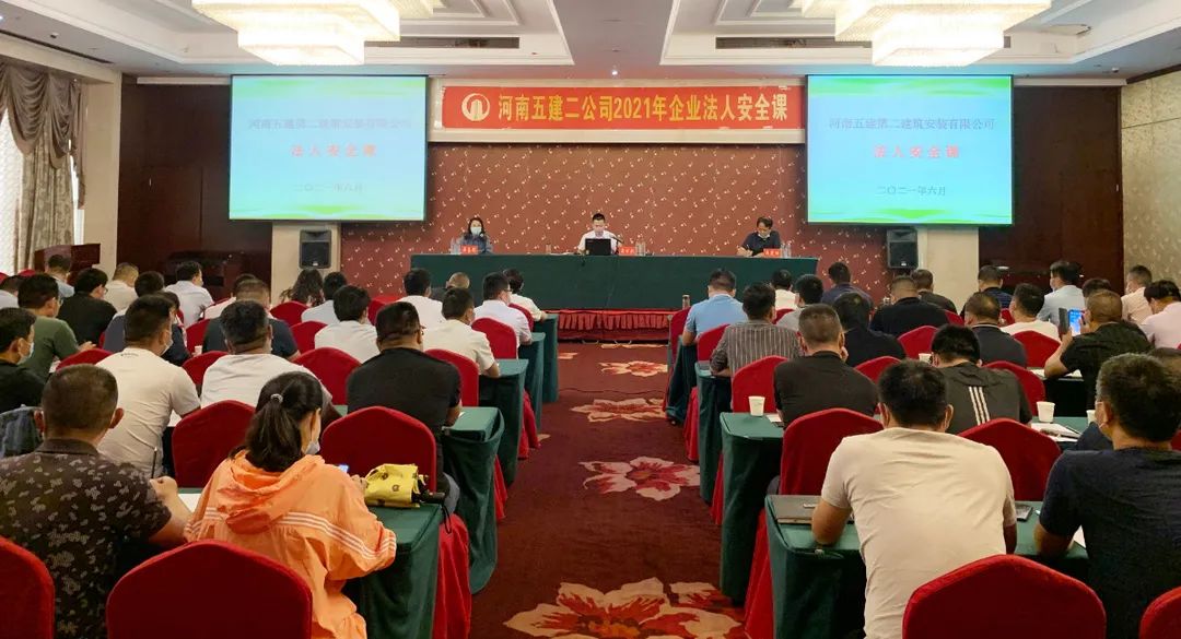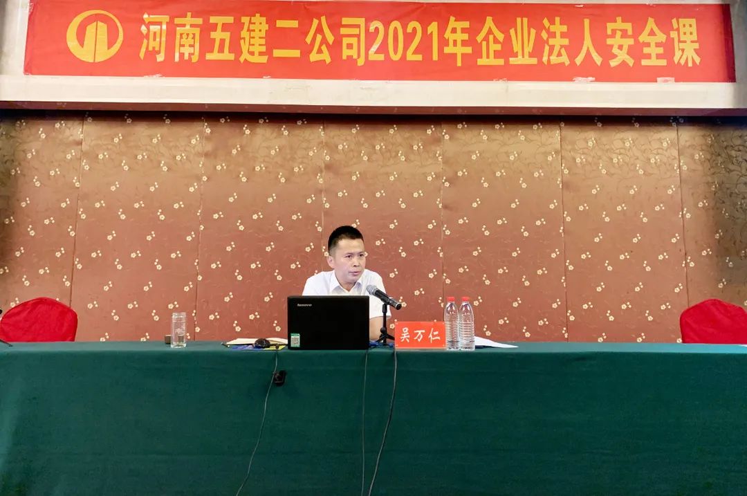 為全面深入開展第20個全國“安全生產(chǎn)月”活動,日前, 河南五建二公司在中樂百花酒店三樓會議廳舉辦了2021年企業(yè)法人安全課,公司董事長、總經(jīng)理吳萬仁以法人代表的身份親自授課。公司董事會、經(jīng)理班子成員、各部門、二級機構(gòu)負責人及各項目部項目經(jīng)理、技術(shù)負責人、專職安全管理人員等共一百余人參加了課程。