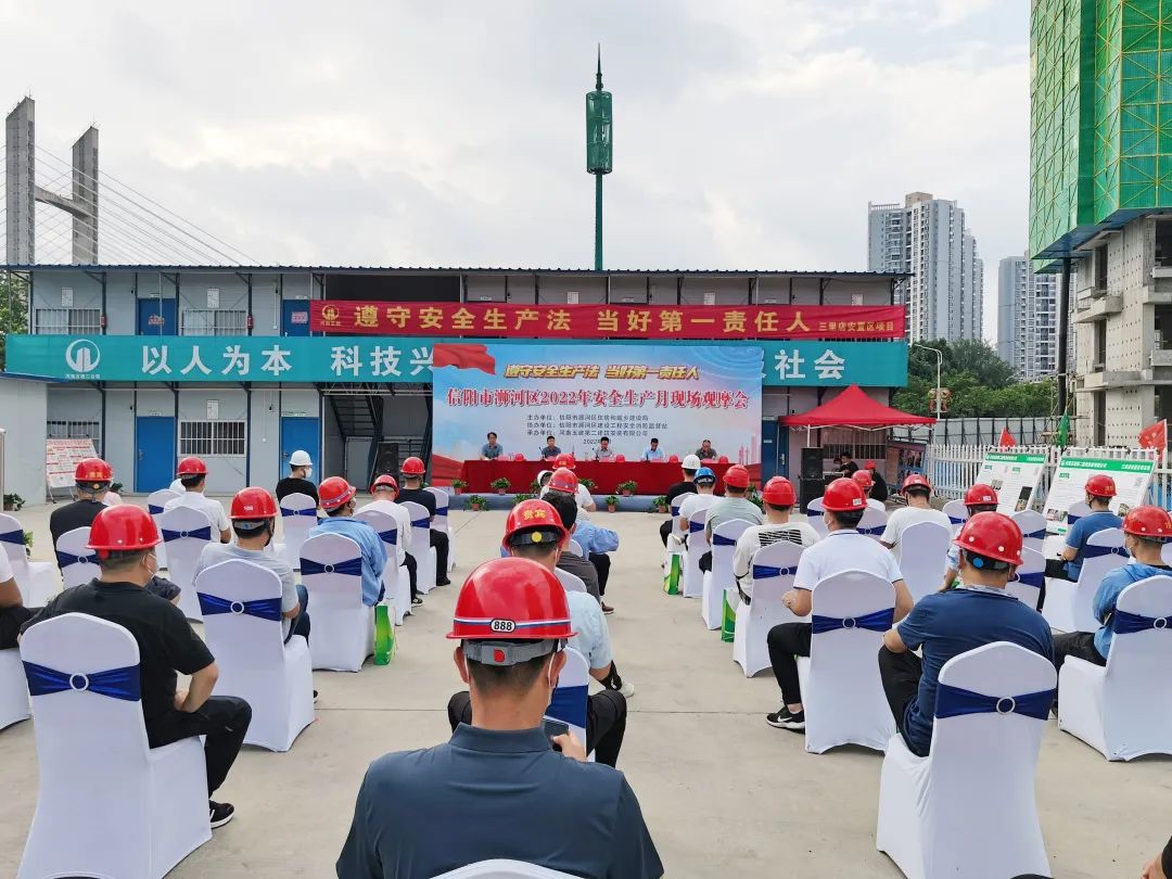 6月22日,信陽市浉河區(qū)2022年“安全生產(chǎn)月”現(xiàn)場觀摩會在公司第七項(xiàng)目部承建的信陽市浉河區(qū)城市有機(jī)更新安置區(qū)三里店片區(qū)建設(shè)項(xiàng)目順利舉行,浉河區(qū)住建局黨組成員、副局長熊國利、監(jiān)管股股長秦宏偉、安監(jiān)站黨組書記馬俊、站長朱偉以及轄區(qū)內(nèi)建筑施工企業(yè)安全負(fù)責(zé)人、在建項(xiàng)目經(jīng)理、項(xiàng)目安全負(fù)責(zé)人參加會議。公司副總經(jīng)理吳建功出席活動并講話。